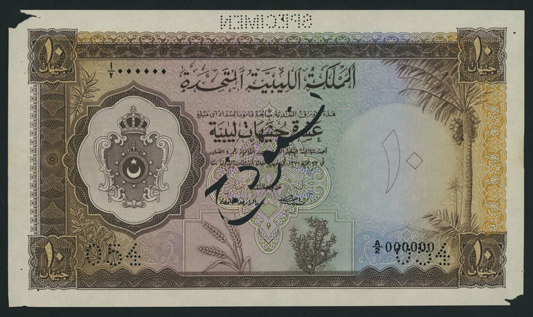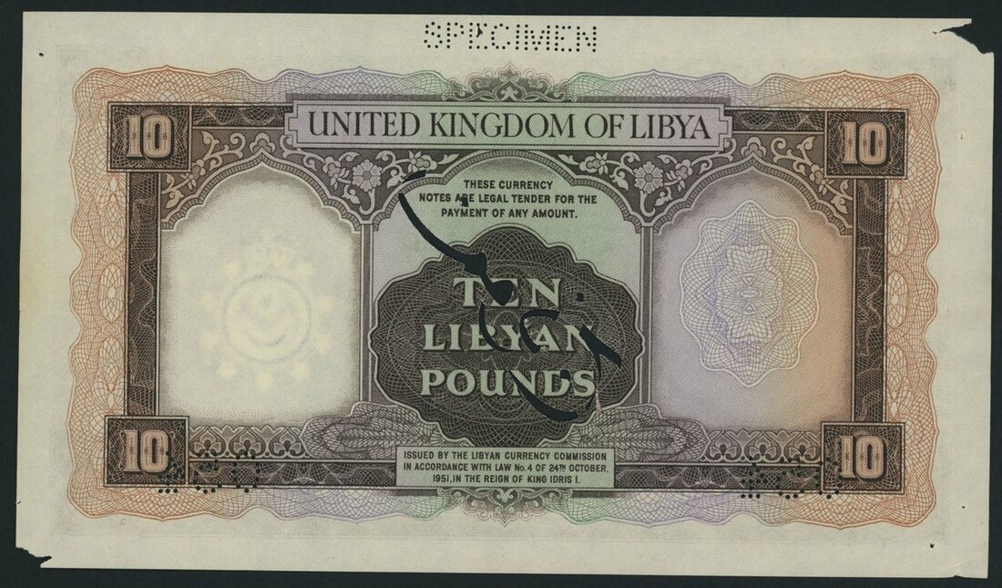 United Kingdom of Libya, specimen 10 Pounds, 1951, specimen number 054,