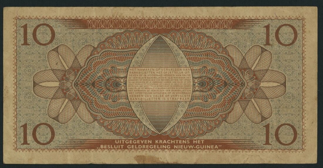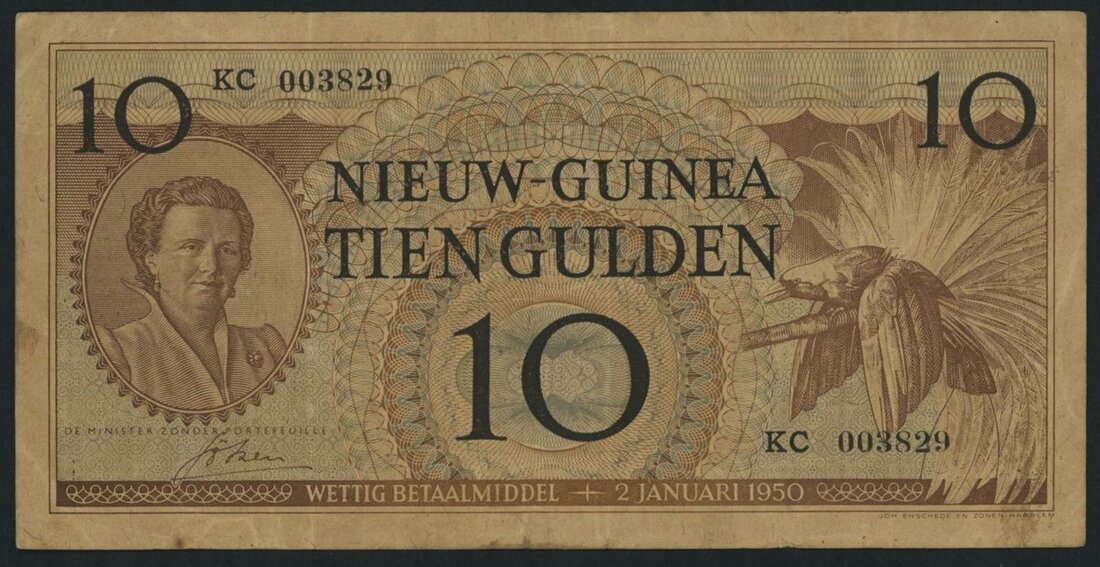(x) Netherlands New Guinea, 10 Gulden, 2nd January 1950, serial number KC 003829, (Pick 7a), good fine, minor staining