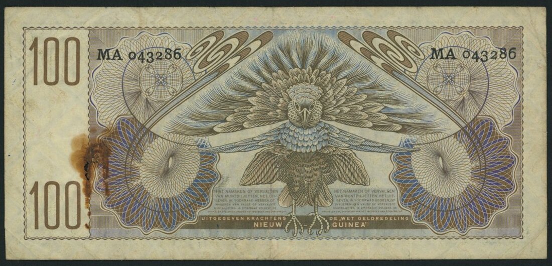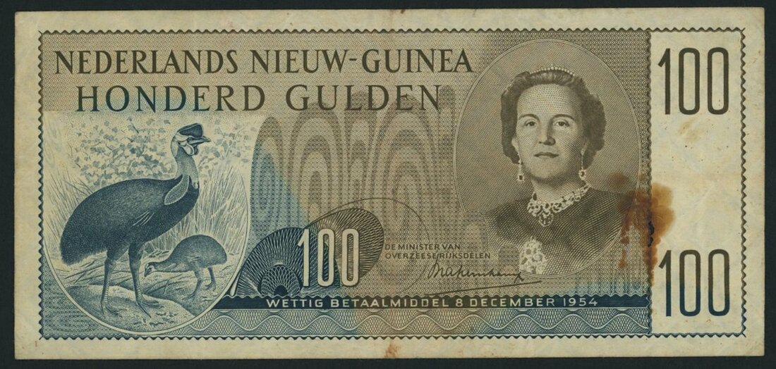 (x) Netherlands New Guinea, 100 Gulden, 8th December 1954, serial number MA 043286, (Pick 16a), rust, internal tear, otherwise about very fine, scarce