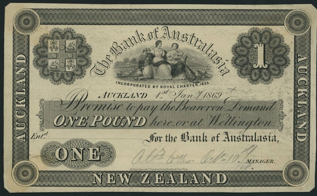 (x) Bank of Australasia, proof 1 Pound, Auckland, 1st January 1869, third issue