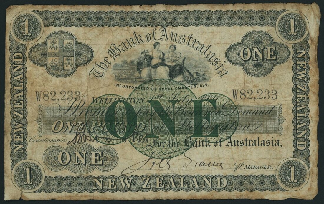 (x) Bank of Australasia, 1 Pound, Wellington, 1st July 1921, serial number W82233, fifth issue,
