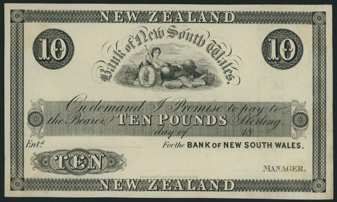 (x) Bank of New South Wales, black and white proof for 10 Pounds, 18--, second issue,