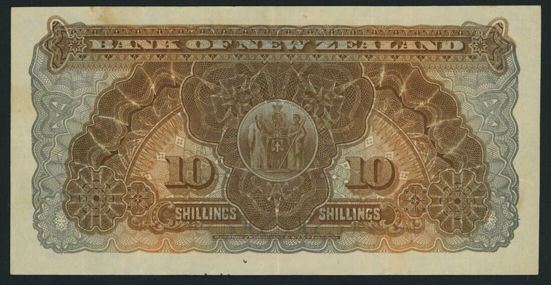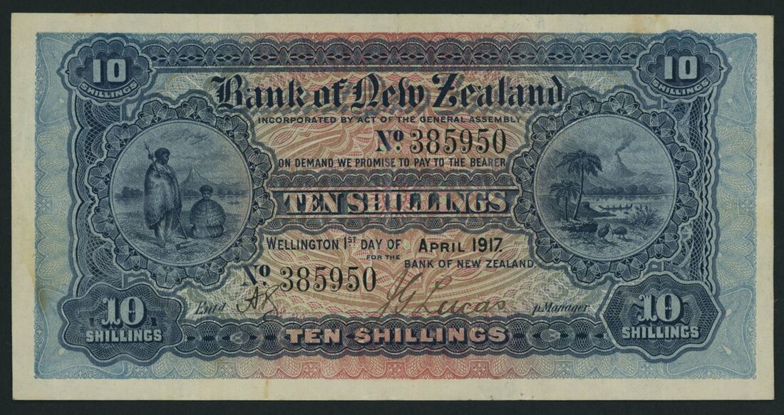 (x) Bank of New Zealand, 10 Shillings, 1st April 1917, serial number 385950, Sixth Issue "temporary", date printed,