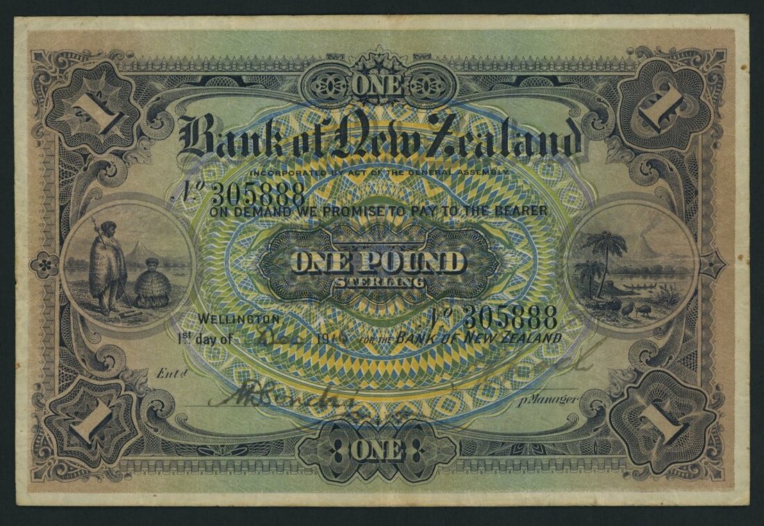 (x) Bank of New Zealand, 1 Pound, 1st December 1916, serial number 305888, seventh issue,