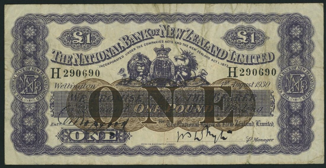 (x) National Bank of New Zealand Limited, 1 Pound, 1st August 1930, serial number H290690, fourth issue,