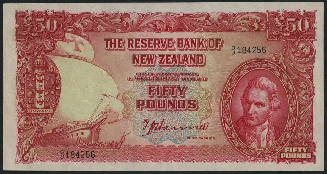 (x) Reserve Bank of New Zealand, £50, ND (1940-55), serial number 0/U 184256, Hanna type 2, (148 known, Pepping, pre-decimal history noted)