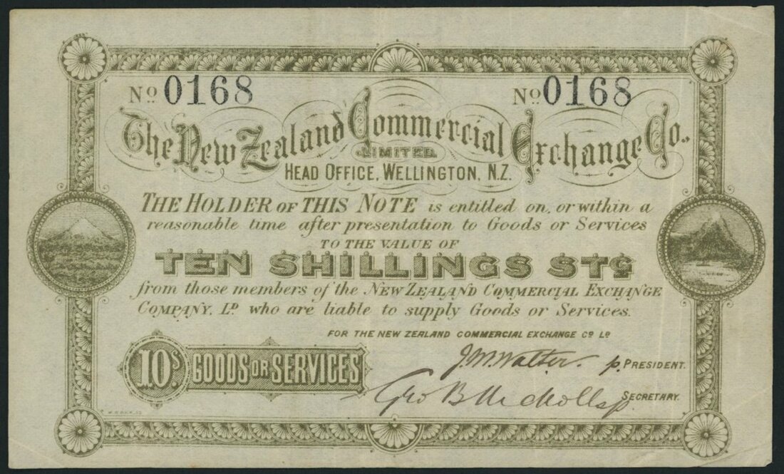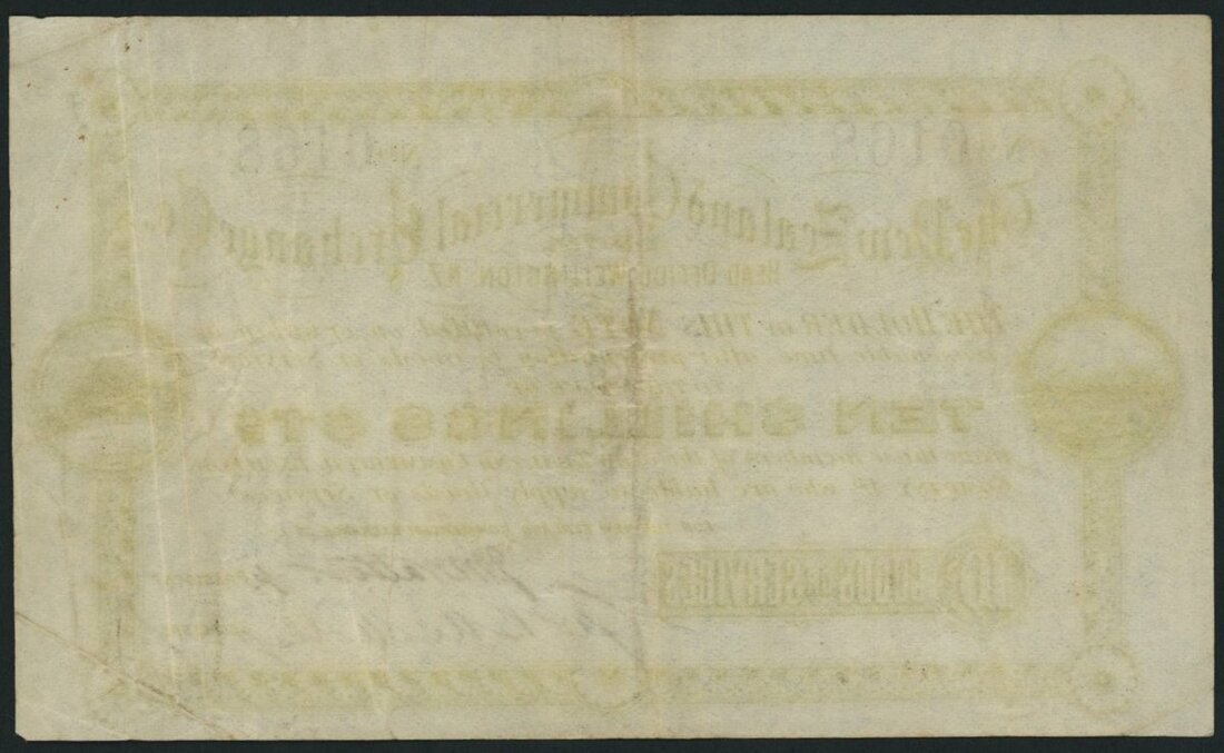 (x) New Zealand Commercial Exchange Co. Limited, 10/- Shillings, Wellington, ND (ca. 1898), serial number 0168, imprint W.R.Bock,