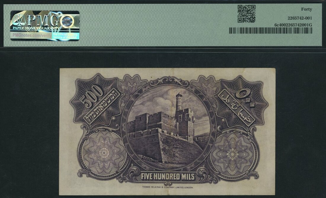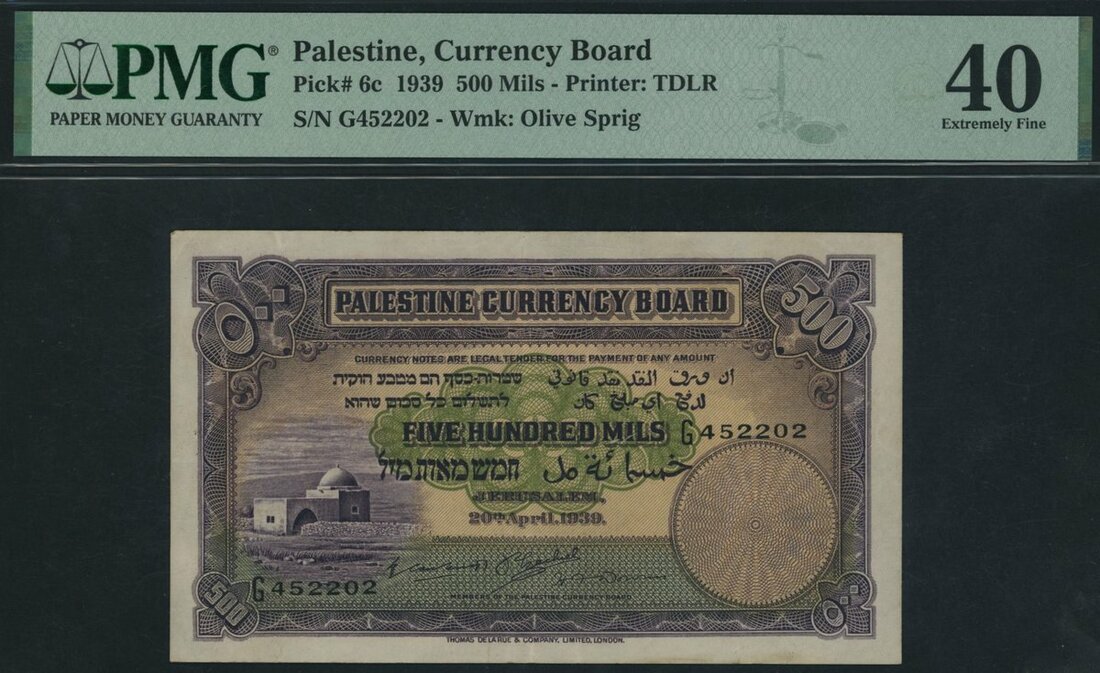 (x) Palestine Currency Board, 500 Mils, 1939, serial number G452202, (Pick 6c), in PMG holder 40 Extremely Fine