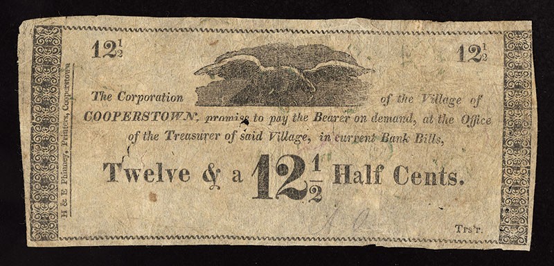 NY. Cooperstown. Corporation of the Village. 12 1/2 Cents. Not dated, but the issue was authorized in 1814. Eagle. (H16) About Fine details, small body hole.