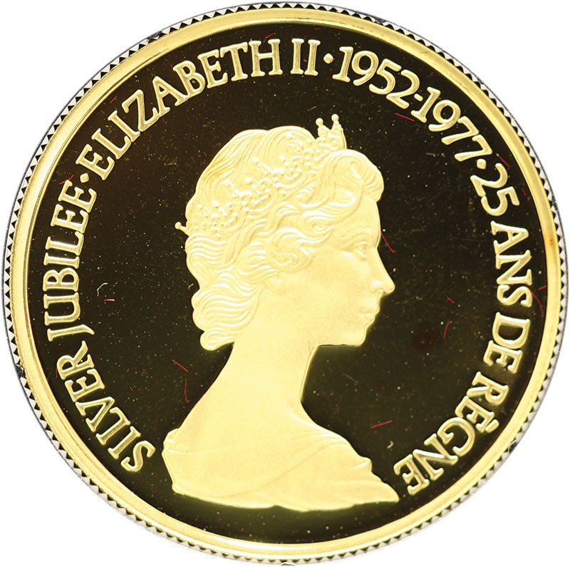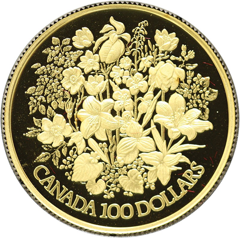 Canada. Elizabeth II (1952-). 100 Dollars, 1977. Queen's Silver Jubilee. Crowned and draped bust right, rev. Bouquet of flowers. KM 119. In original case with Certificate. Brilliant Proof.