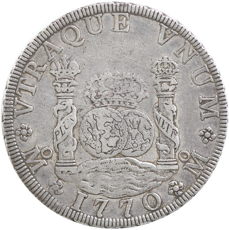 Mexico. Carlos III (1759-1788). 8 Reales, 1770 Mo FM. Mexico City. Dos Mundos types. KM 105. Good Very Fine.