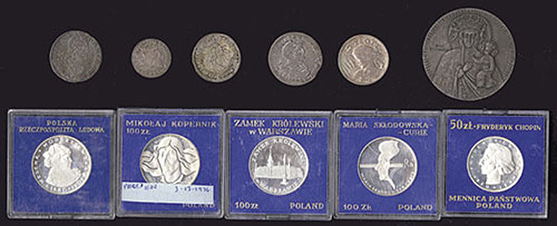 Poland. Lot: Tympf, 1654 MW, 1678; Trojak, Riga 1592; First Republic. 2 Z?ote, 1924. Paris. Toned About Very Fine-Extremely Fine; Peoples Republic. 50 Z?otych, 1972 Chopin; 100 Z?otych, 1974 Kopernik, 1974 Curie, 1975 Royal castle, 1975 Modrzejewska. Brilliant Proof, also Saxony. 6 Groschen, 1702 EP-H; and 1914 Zinc 'Black Madonna' Medal by Lewandowski honoring the fallen in Poland's struggles for freedom. Very Fine-Extremely Fine. (11)