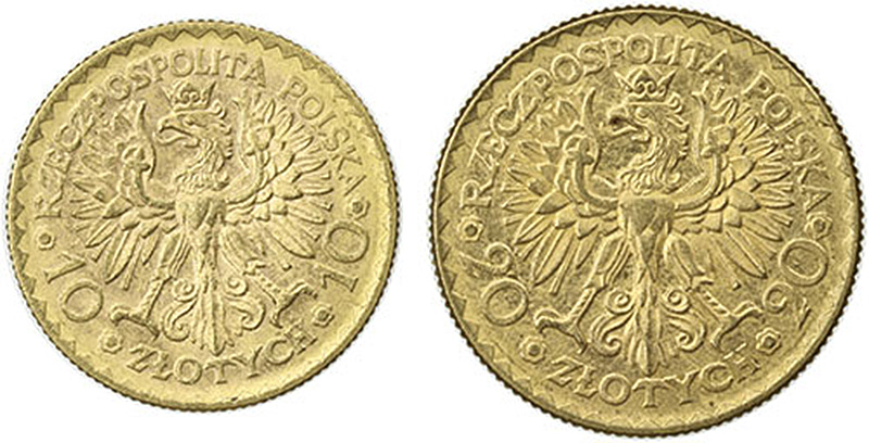 Poland. First Republic. Pair: 10 and 20 Z?otych, n.d. (1925). Bo?eslaw Chrobry bust left, rev. Crowned Polish eagle. Fr. 116, 115; Y.32, 33. Some bagmarks. Brilliant Uncirculated. [2]
