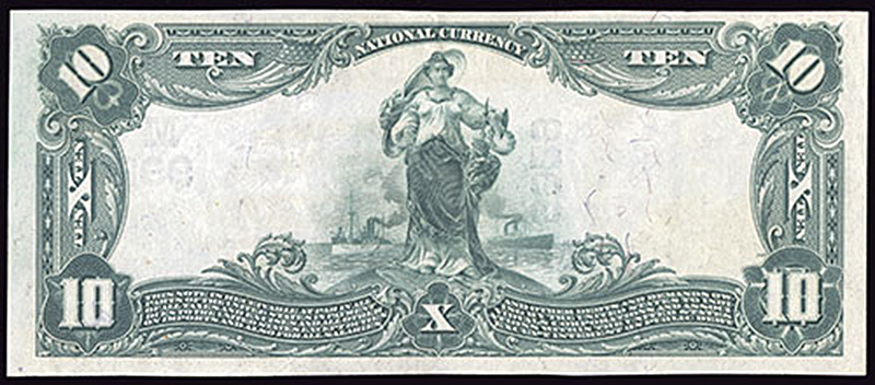 Only two notes appear on the census; a $5 Date Back said to be EF, and a $10 Plain Back with this serial number (but no plate letter indicated) listed as "63." The $5 Date Back realized $12,650 in Lyn Knight's Memphis 2008 sale. It may be decades before another note from this bank appears. John acquired this example from William P. Donlon in 1961.