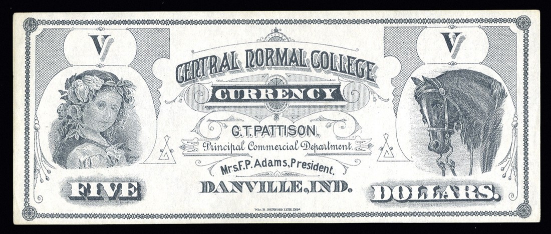 IN. Danville. Central Normal College. $5. IN-200-5A. Pattison. Unc.