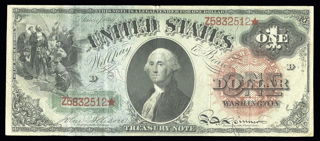 Fr.18. $1. Legal Tender. 1869. George Washington. No.Z5832512. Plate D. VF details.There is a small split at the top center, perhaps repaired.