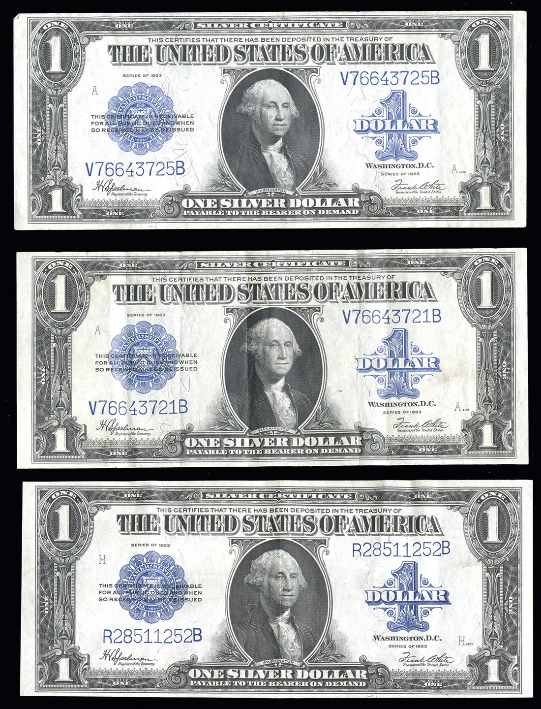 1923 $1 Silver Certificates and Others. 1-3) Fr. 237 VF-EF; EF; EF-AU. 4) 5th Issue Fractional 25 Cents thin key EF. 5) Fourth Issue Fractional 10 Cents About Good [5]