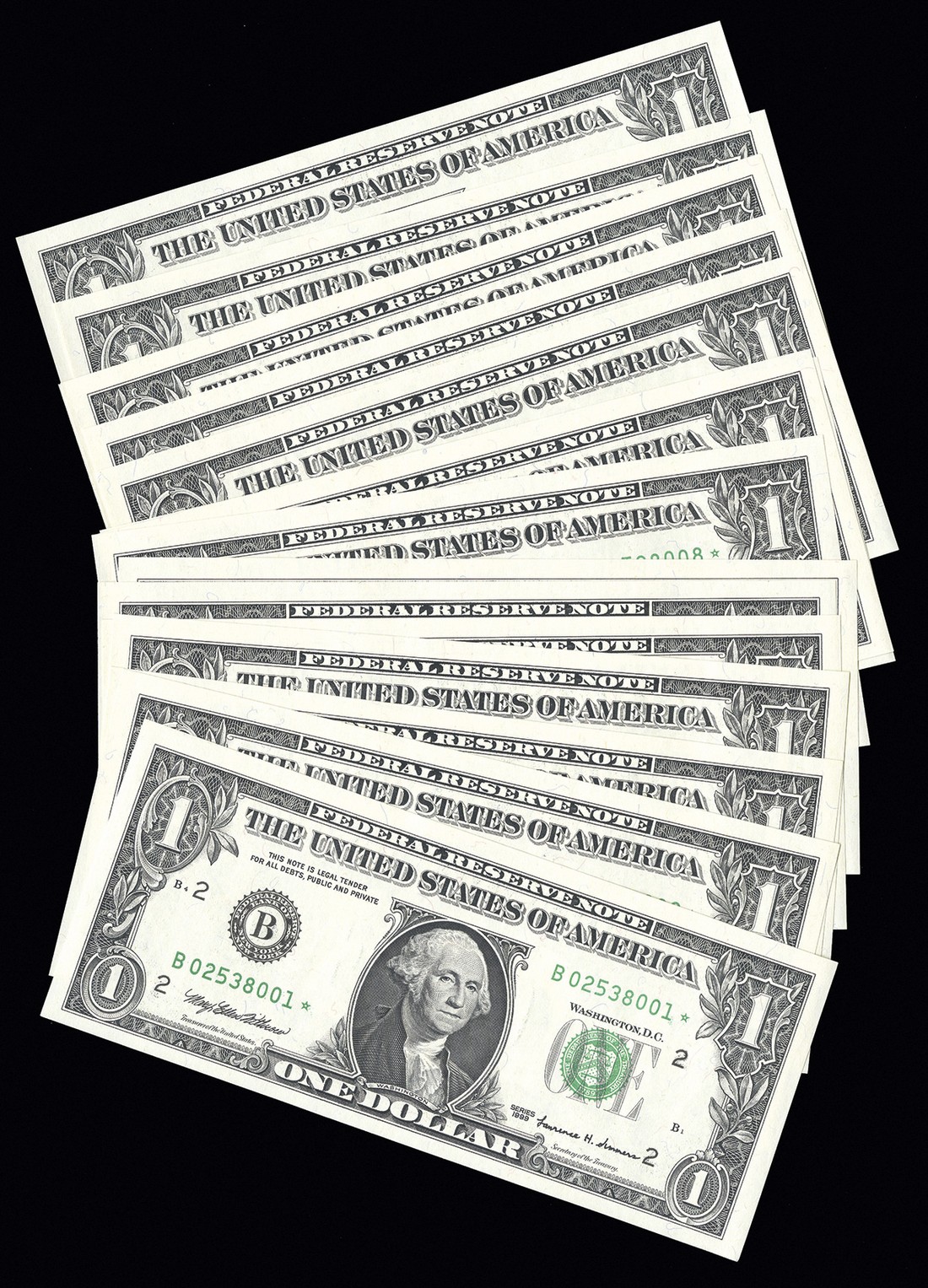 Small Size Federal Reserve STAR Note Assortment. 1-16) $1 1999. B02538001-16. Choice CU. 17-23) $2. F(2), H, I(4). 24) $5 Chicago. 25) $10 1995. St. Louis. 26) $20 1993. San Francisco. [26]