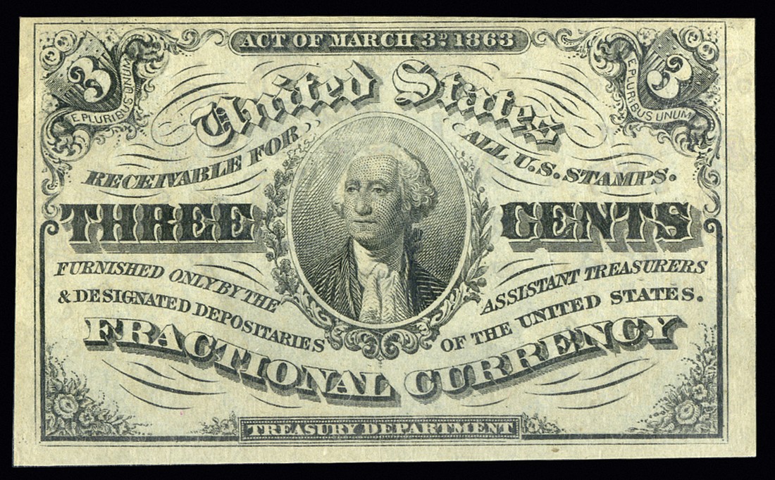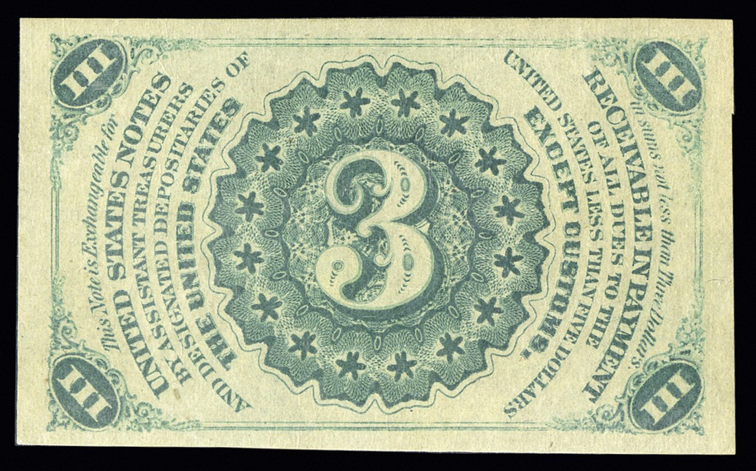 Fr.1226. 3 Cents. Third Issue. Light background. PMG Choice Uncirculated 63 EPQ.