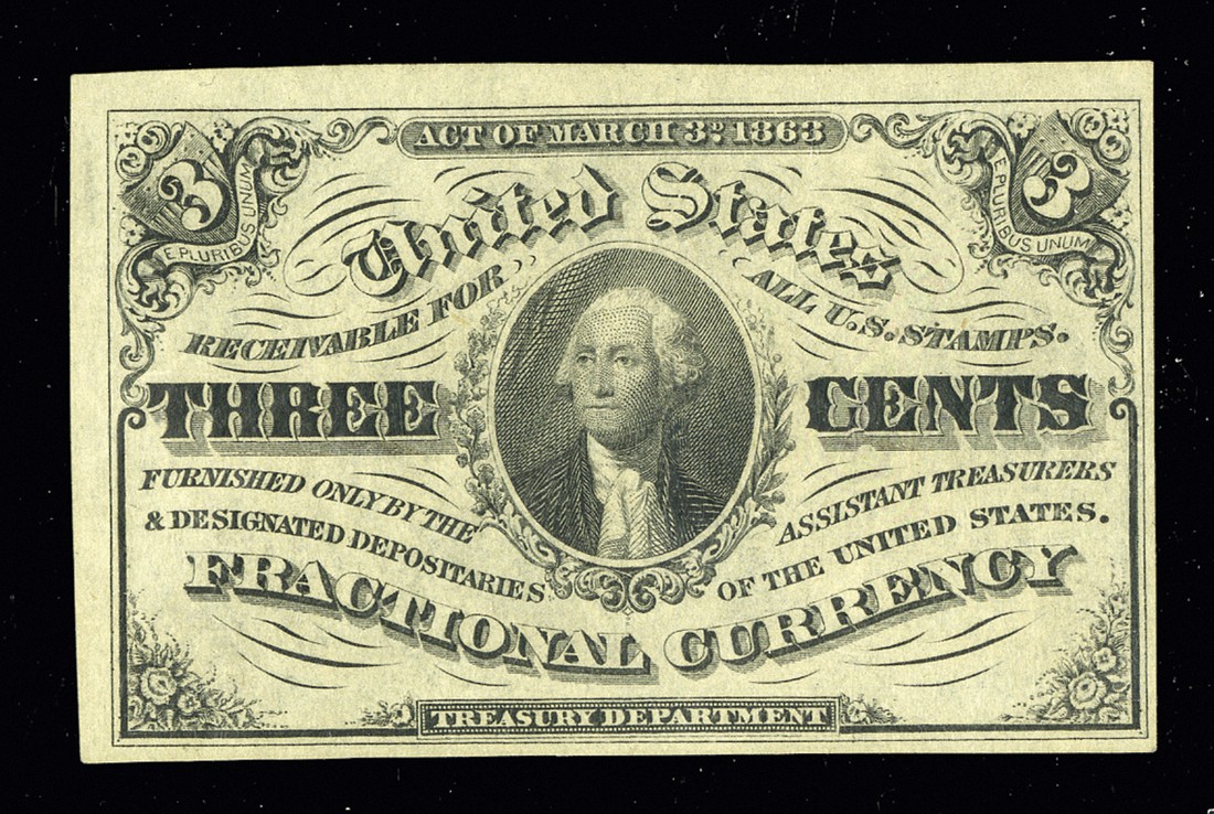 Fr.1227. 3 Cents. Third Issue. Dark background. PCGS Choice New 63 PPQ.