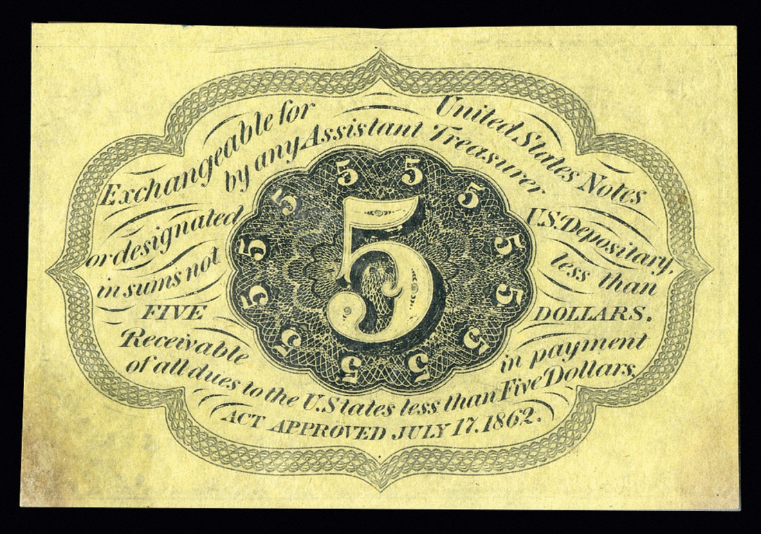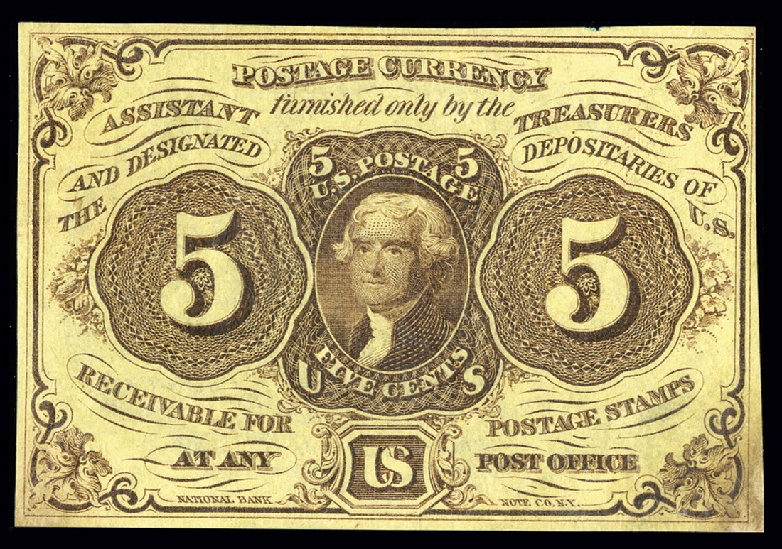 Fr.1231. 5 Cents. First Issue. Straight edges. No monogram. PMG Uncirculated 62.