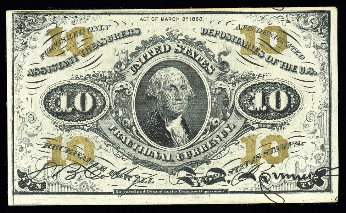 Fr.1256. 10 Cents. Third Issue. Green back with design numeral "1." PCGS. Choice New 63 PPQ.