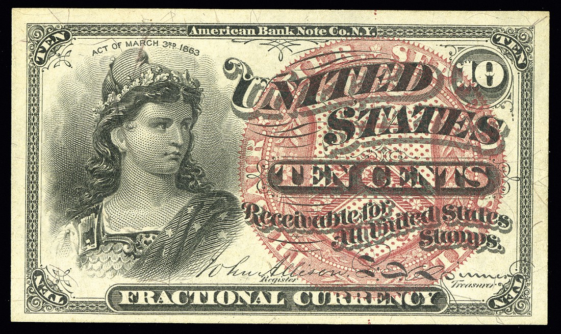 Fr.1258. 10 Cents. Fourth Issue. Unwatermarked paper. PCGS Choice New 63 PPQ.