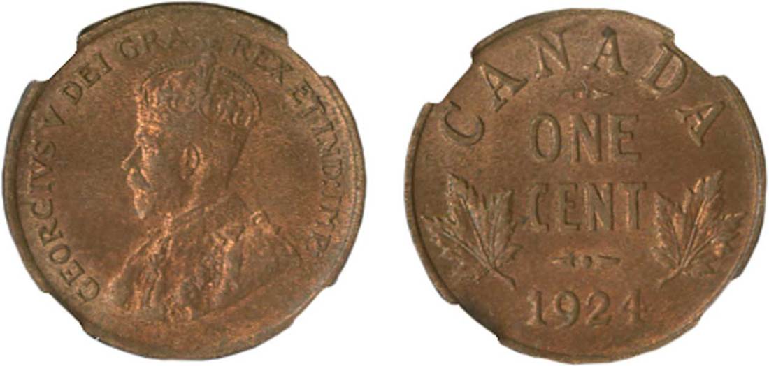 Canada. George V (1910-1936). Cent, 1924. KM 28. NGC Uncirculated Details. Altered color.