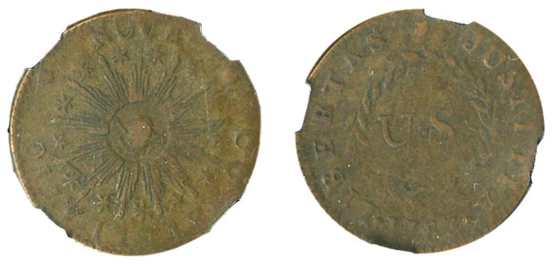 1783 Nova Constellatio Copper. Pointed rays, large U.S. Crosby 1-A. NGC VF 20 BN. Date and legends easily readable, some areas a bit weak from strike from later die state. No roughness, verdigris or notable marks. Even deep milk chocolate brown. Presentable example of this very scarce variety.