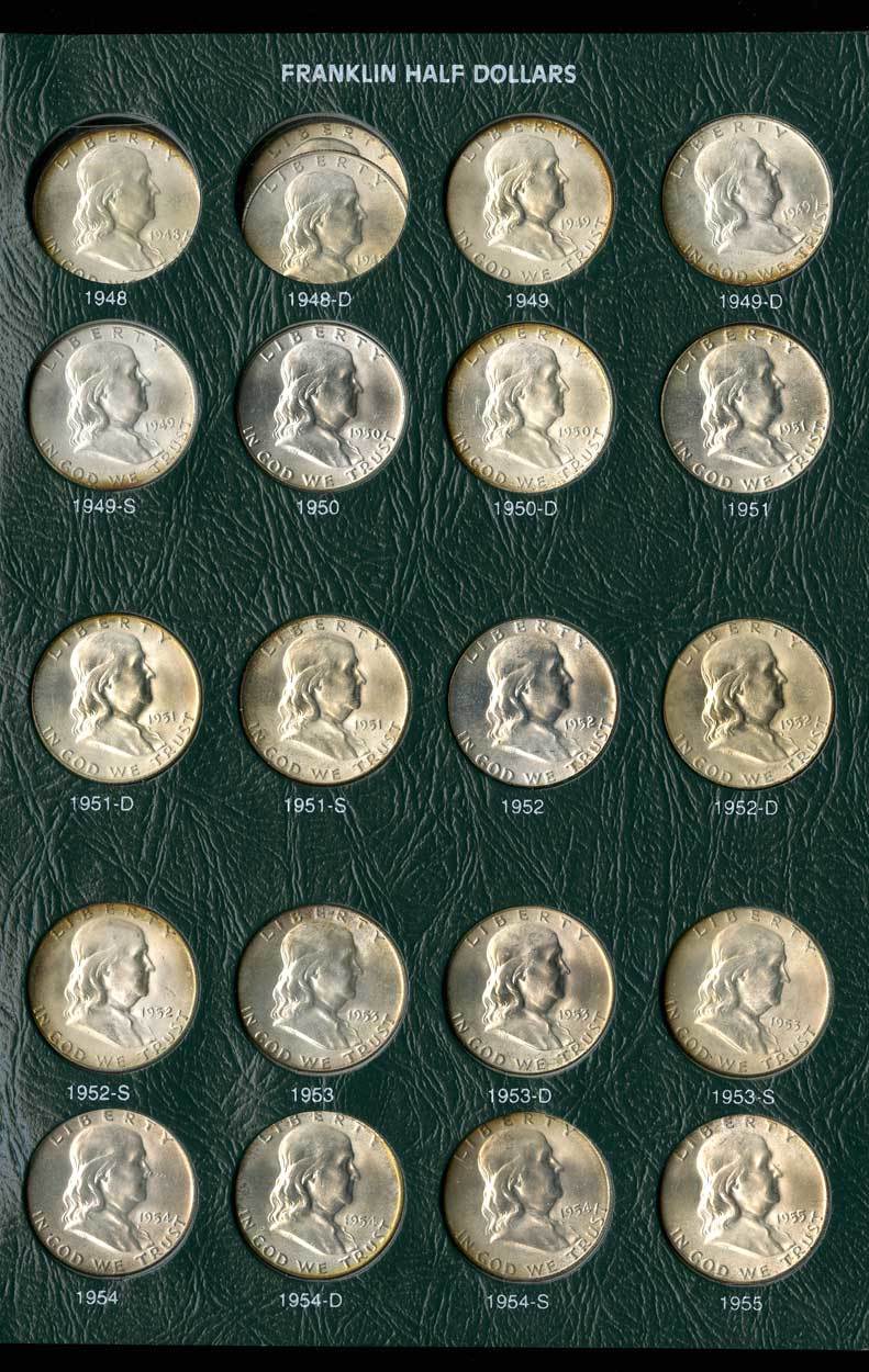 Franklin Half Dollar Complete Uncirculated Set in a Green "Museum Quality" Album. 1948-1963. All Choice or Better. Mostly white, but a few with touches of attractive toning. Well above average, and worth a premium bid. (37)