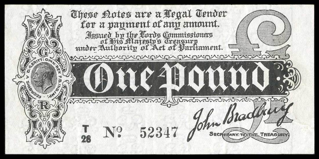 Great Britain. Treasury Note. 1 Pound. ND (1914). P-347. Black. George V portrait at left. VF.