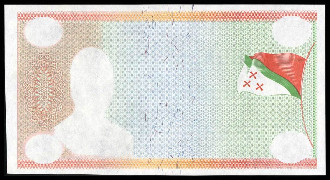 Katanga. Banque Nationale du Katanga. 10 Francs. 1960. Error: Front printed with color tint plate only. Cf.P-5A. Tshombe (outline only), reservoir, value, serial number, etc. not printed. Foundry at center back. Choice Crisp Uncirculated. Interesting error on a rare note.