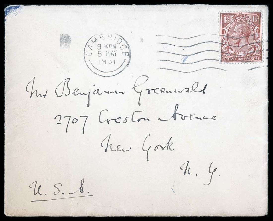 Housman, Alfred E. (1859-1936) English poet and scholar. ALS, 1 pp, 8vo. Trinity College, Cambridge. May 9, 1931. To Mr. Greenwald. Envelope included.