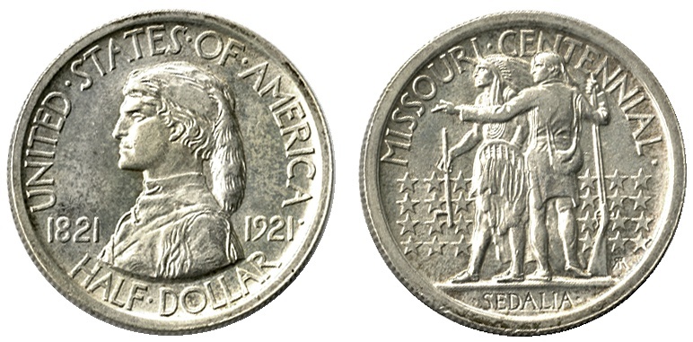 1921 Missouri Half Dollar. Brilliant Uncirculated. The reverse is quite Choice.
