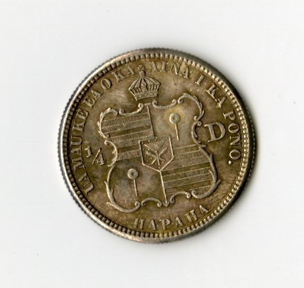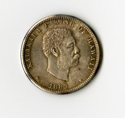 Hawaii. Kalakaua (1874-1891). 1883 Quarter. Uncirculated. With light charcoal gray toning.