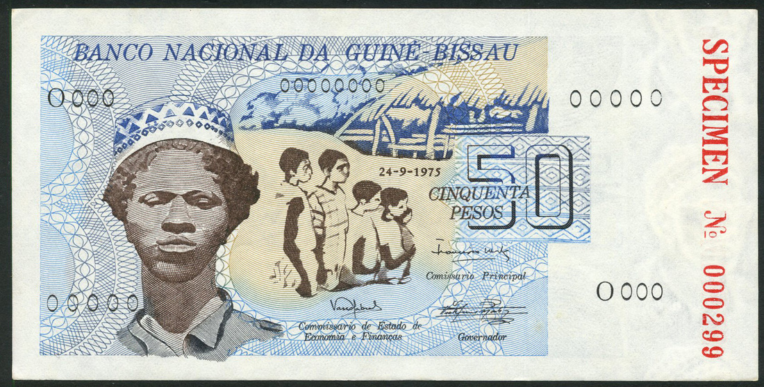 Banco Nacional da Guine Bissau, a specimen set of the 24 September 1975, all zero serial numbers, comprising 50, pale blue, 100, brown and 500, green, Nalsna, Ramos and Cabral portraits respectively
