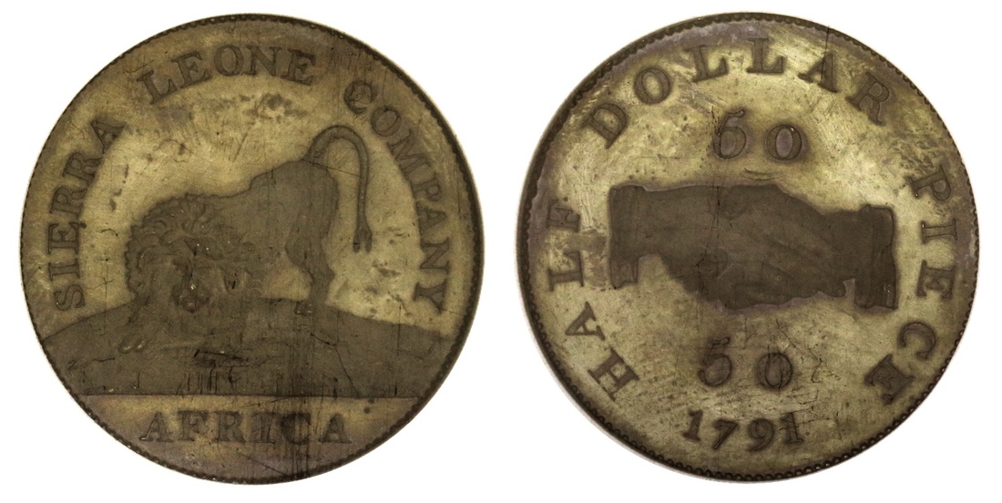 Sierra Leone. Sierra Leone Company. Bronzed Proof Copper 50 Cents, 1791. Lion crouching facing on earthen mound, rev. Hands clasped, numeral value above and below; HALF DOLLAR PIECE. KM 5a. Pleasing café au lait with iridescent undertone, meticulous details. NGC PF 64 BN.