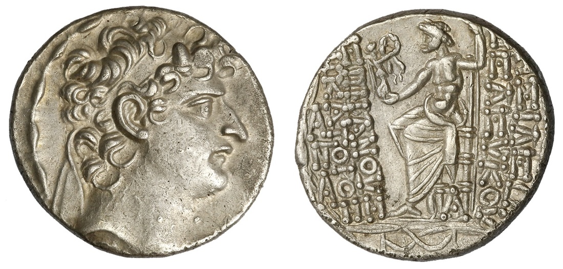 Seleukid Kings of Syria. Seleukos VI Epiphanes Nikator (Ca. 96-94 BC). AR Tetradrachm. Antioch. 15.99 gms. Diademed head right, rev. Zeus seated left, holding Nike and a scepter, A below strut. SNG Spaer 2768 (same obverse die), Newell SMA 422, Houghton 362-3. Near Extremely Fine. Ex CNG Sale 61, Sept. 25, 2002, lot 855.