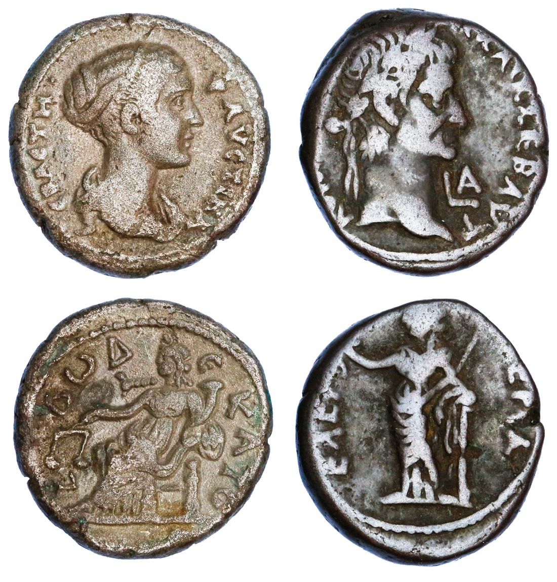 Roman Provincial. Pair of Billon Tetradrachm of Alexandria: Galba (68-69). Year 1 (68). 13.66 gms. Laureate head right, date LA before, rev. Eleutheria standing left. Köln 220, Dattari 306. About Very Fine; and Faustina, Jr., Augusta (147-175). Year 12 (148/9). 12.09 gms. ?AVCTINA CBACTH., draped bust right, rev. Dikaiosyne seated left, holding scales and cornucopiae, L? ??E KATOV around. Köln 1944, Dattari 3238. Somewhat grainy. Pleasing portrait. Very Fine. (2)