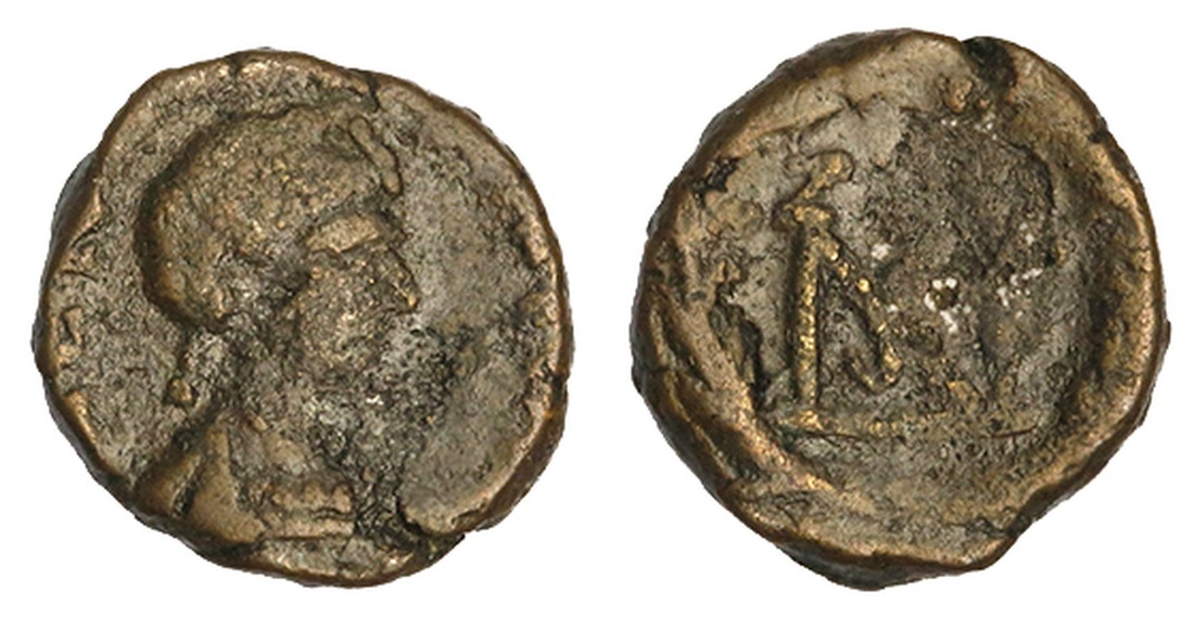 Roman Imperial. Eastern Empire. Aelia Zenonis, wife of Basiliscus, Augusta (475-476). AE, 10.5mm. Constantinople(?) 1.06 gms. (A) ZEN-(ONIS), pearl-diademed, draped bust right, rev. Zenonis monogram within wreath. RIC 1018. Very rare. Brown patina. About Very Fine. Ex Peter Lowrek Collection.