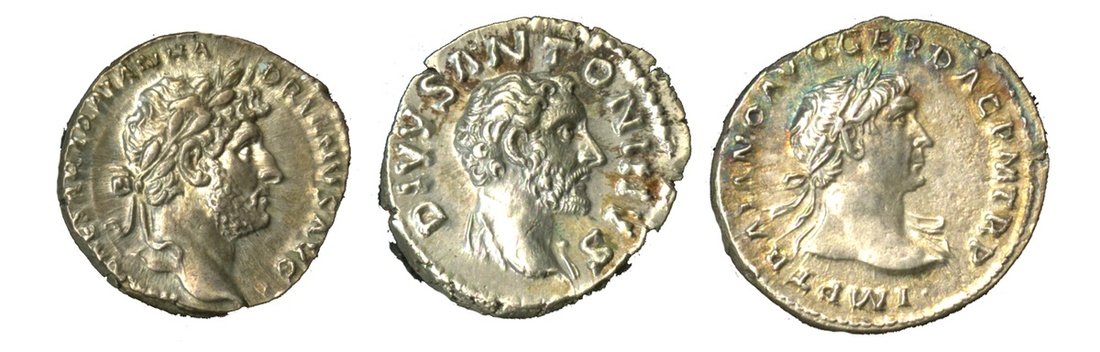 Roman Imperial. Trio of Second Century AD Denarii: Trajan (98-117). 103-112. Laureate bust right, rev. Victory advancing left. RIC 131; Hadrian (117-138). 119-122. Laureate head right, rev. Roma seated left on cuirass. RIC 77; and Divus Antoninus Pius (died 161). Bare head right, rev. Four-tiered pyre surmounted by a quadriga. RIC 438. All, Extremely Fine. (3)