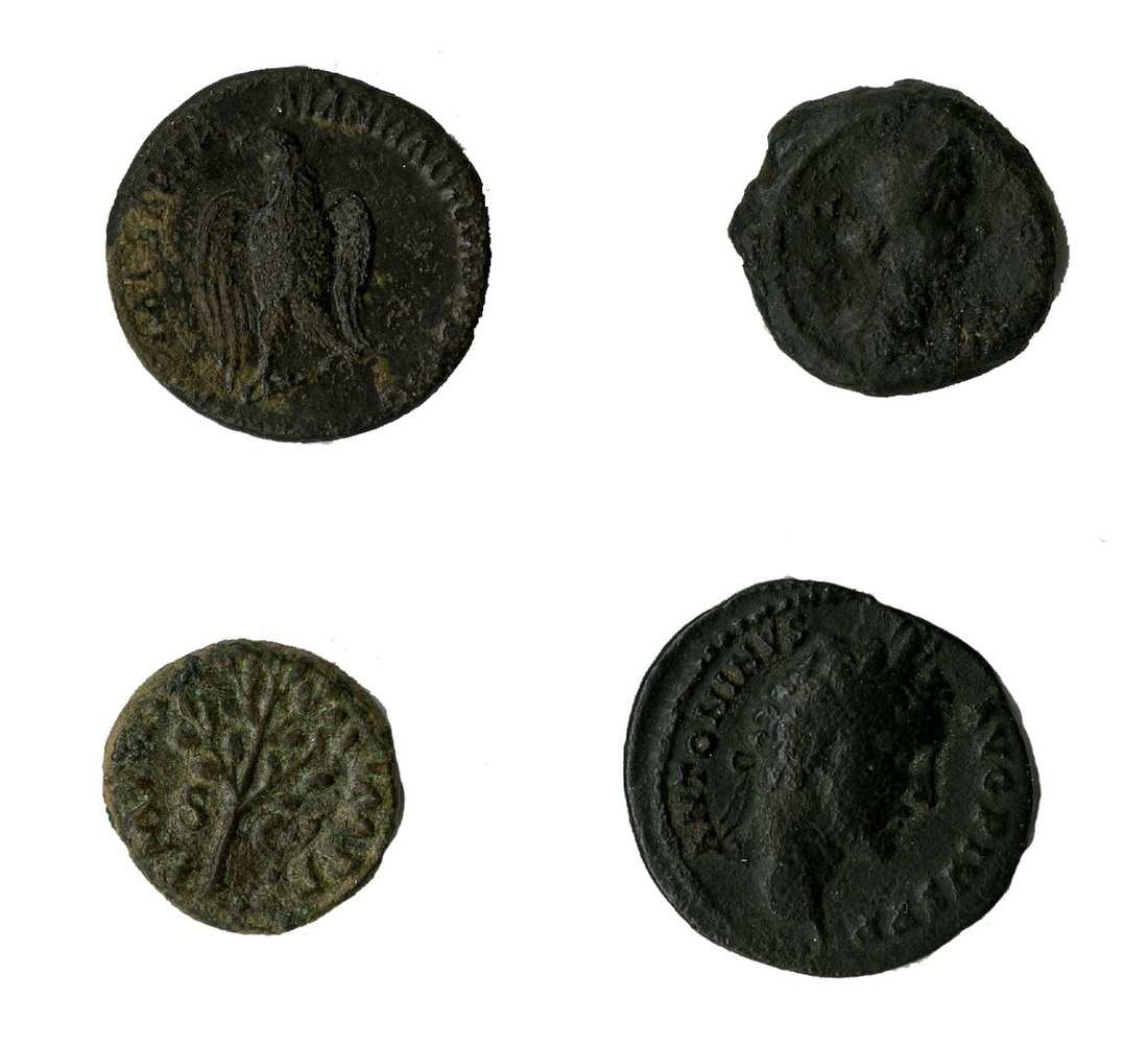 Roman Imperial. Lot of AE Quadrans: Anonymous, time of Hadrian to Antoninus Pius (117-161). Jupiter/Eagle; Jupiter/Winged thunderbolt; Bust of Venus/Dove (2); Petasus/Winged Caduceus. RIC 1ff, 6, 24, 32; Nero. Uncertain/ Branch, possible mule; Hadrian. Eagle/Winged thunderbolt. RIC 624; also, Antoninus Pius. AE contemporary imitation of Denarius? His laureate head right/Modius, COS III, SC in ex. Fine-Very Fine. (8)