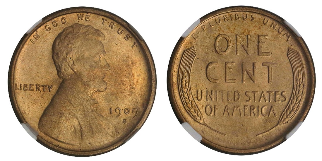 1909-S/ Horizontal "S" Lincoln Cent. NGC MS66+ RD. CAC verified. Very rare so nice, a marvelous example of this elusive variety.