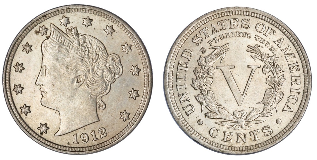 1912 Liberty Nickel. Uncirculated. Attractive and lustrous.