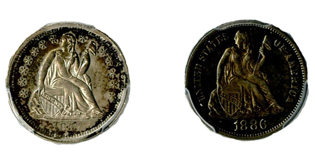 PCGS Certified Liberty Seated Dime Duo. 1857 AU58; 1886. Both with nice toning. [2]