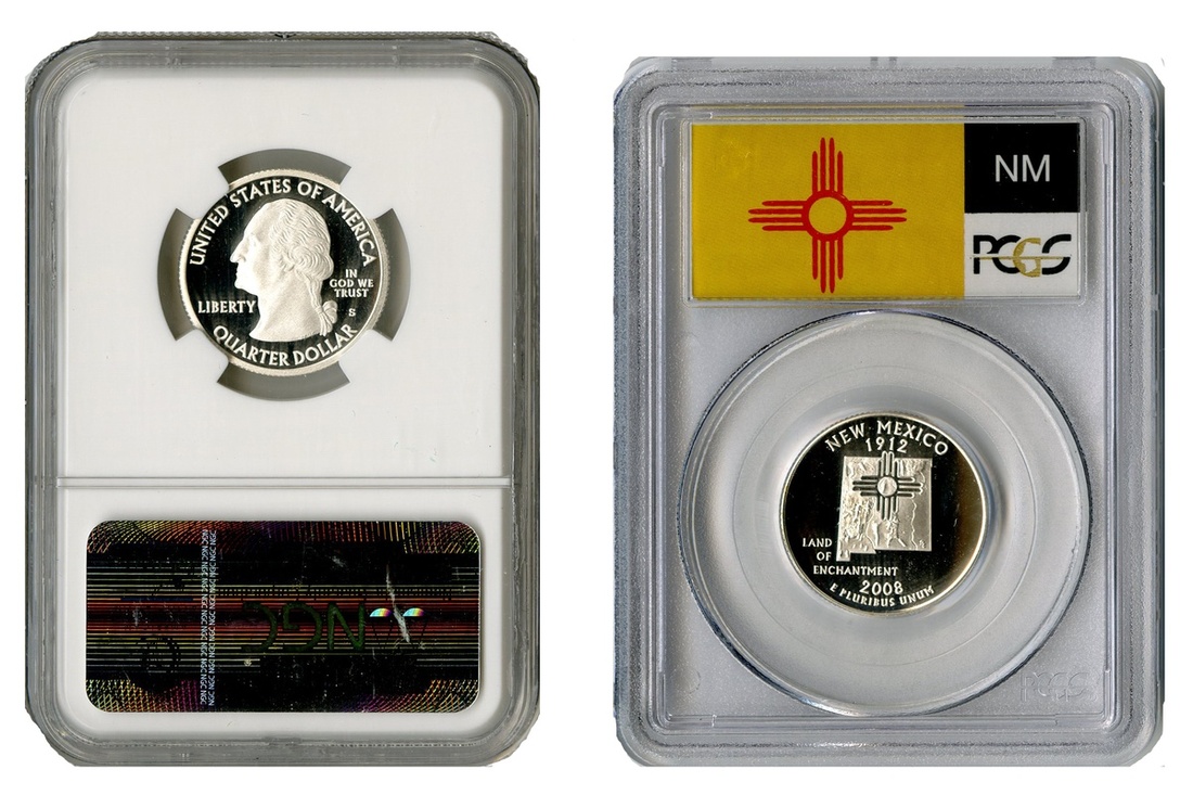 Mostly Certified High Grade Silver Proof State Quarters. NGC or PCGS Certified. Most are 69DCAM or Ultra Cameo, some better: Alabama; Alaska; Arizona; Arkansas; Arkansas Hot Springs; California; DC; Illinois; Idaho; Maine; Missouri; New Mexico; North Carolina; Oklahoma; Texas; Utah; Virginia; Guam; Northern Marianas; Puerto Rico; U.S. Virgin Islands. Also included are a 1934 Washington Quarter NGC MS 63; non-certified Silver Proof and Uncirculated state quarters(8) and the following certified non-silver examples: Chicasaw; Northern Marianas; American Samoa; Hawaii, and a 1981-S Proof. (35)