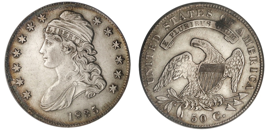 1835 Bust Half Dollar. ANACS AU 55.