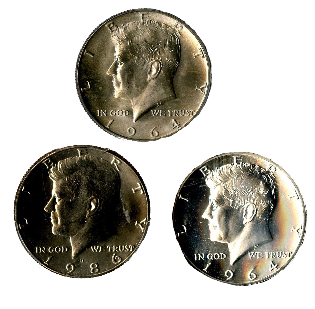 Kennedy Half Dollar & Ike Dollar Assortment, Mostly. Half Dollars: 1964 NGC MS 65; NGC PF 67; 1964 Proof PCS; 1064-D PCGS MS65; 1986-D PCGS MS65; 1990-S PCGS PR69DCAM; 2001-S NGC PF 69 UTLTRA CAMEO; 2004-S PCGS PR69DCAM Silver; 2007-S PCGS PR69DCAM Silver; 2013-S PCGS PR69DCAM Silver. Dollars:1971-S Accugrade Proof 65; 1972-S Silver NGC PF 69; 1973-S Silver PCGS PR69DCAM; 1976-S Silver PCGS PR69DCAM. Also included is a 1964 NGC PF 69 Roosevelt Dime and a 2011-S PCGS PR70DCAM Silver Roosevelt Dime. [16]