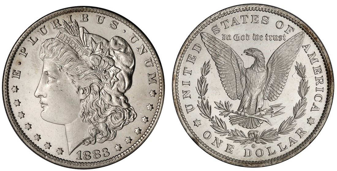 1883-O Morgan Dollar. Uncirculated. Minor bag marks, otherwise full white lustre.