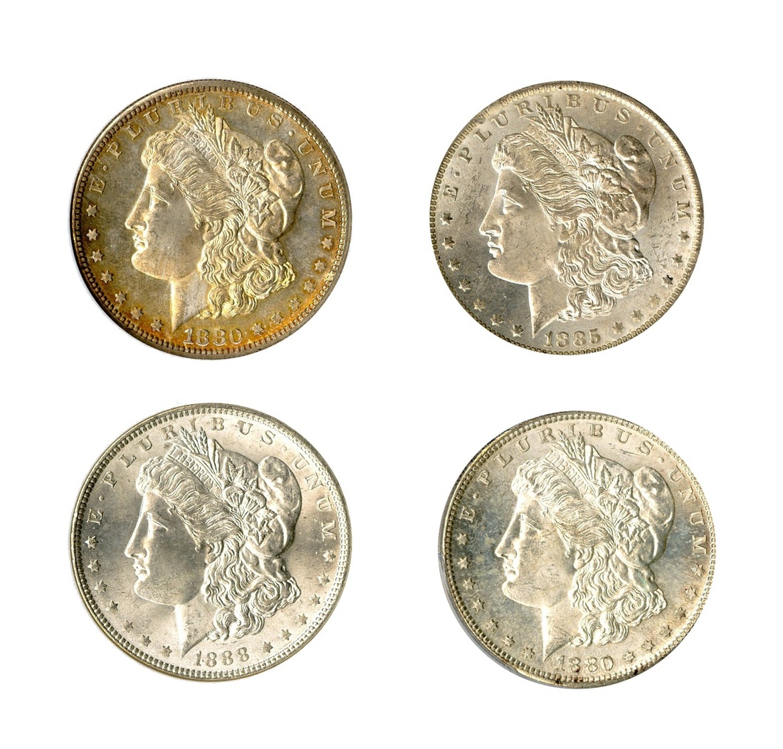 A Pleasing Assortment of Certified MS 65 Morgan Dollars. 1880-S NGC; 1880-S PCGS; 1885-O PCGS; 1888 NGC. (4)